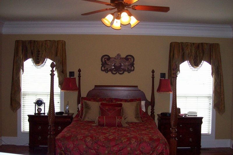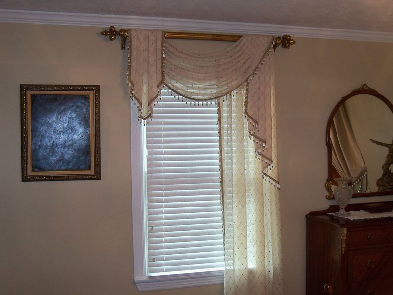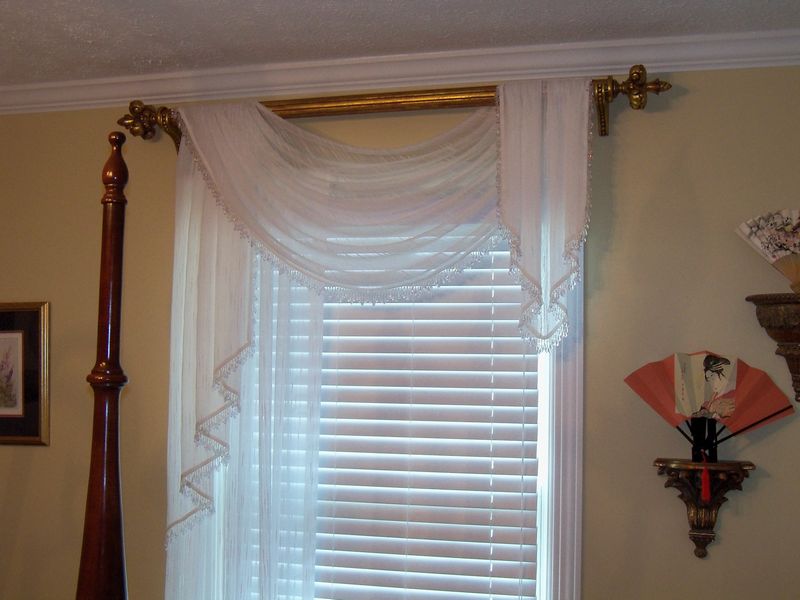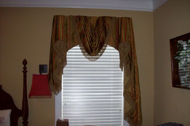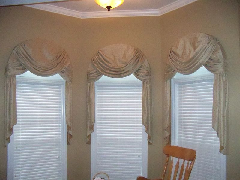 Arched, gathered swags & jabots