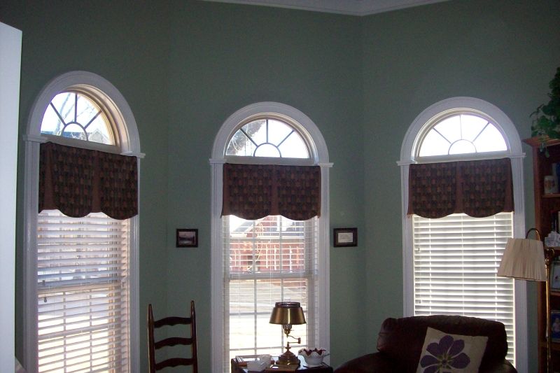 Arched windows in bay, inside mount valances